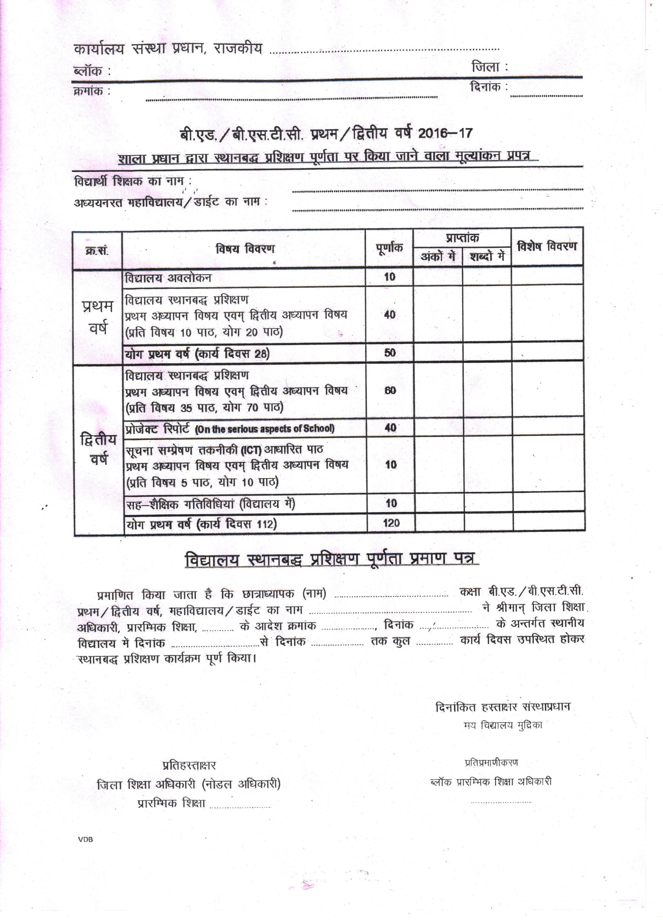 B.Ed 2 nd Year Internship formatDated:06-05-2017